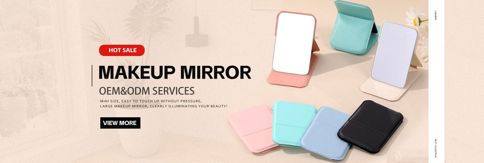 Espejo de maquillaje con marco de cristal de PU cuadrado compacto para mujer, diseño moderno, Etiqueta Privada, patrón plegable, espejo de tocador de viaje pequeño